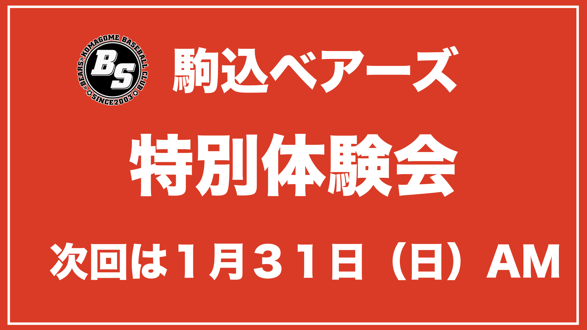 特別体験会は1月31日(日)AM