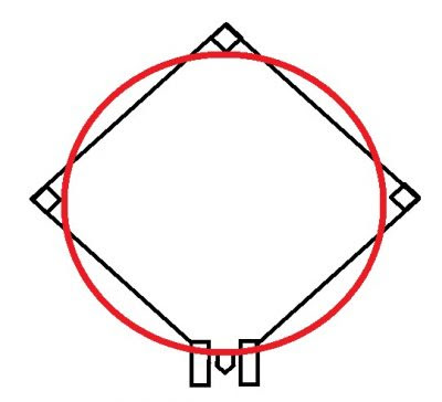 ベーランをやってみて面白かったのが、ベースを踏めない子が続出したことです。ベーランは下記の赤線のように膨らんで走らないと早く走れません。ベースを踏むために手前でブレーキをかけたり、ベースを突き抜けてしまい大きなタイムロスをしてしまいます。