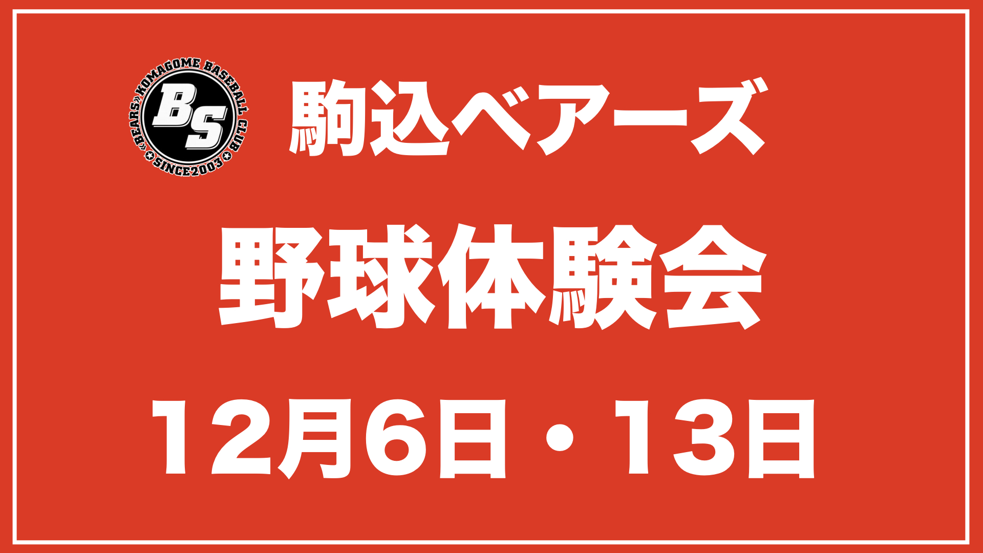 来たる12月6日(日)と13日(日)に野球体験会を開催します⚾️