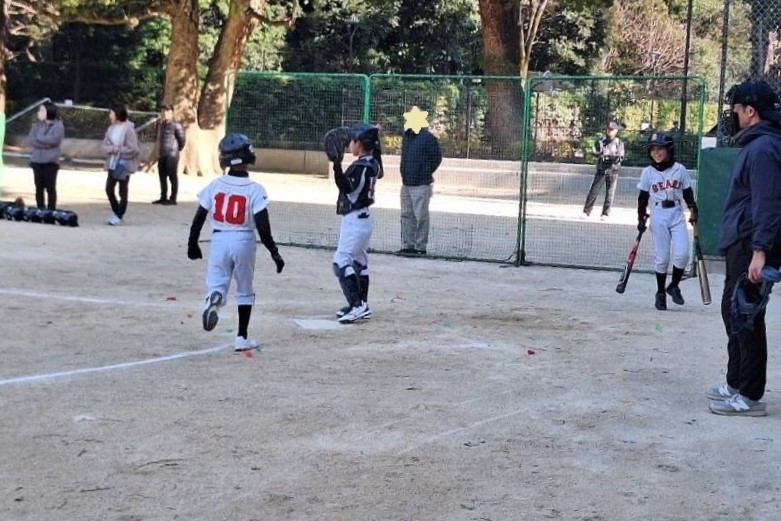続く16番さんの進塁打に続き、13番くんの内野ゴロの間に先制!