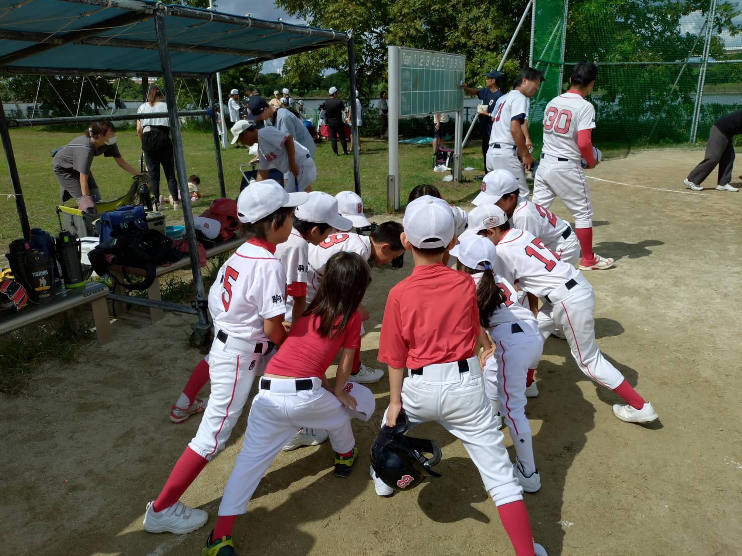 入部したばかりの1年生、年長さん、体験の1年生にも参加してもらい、ドキドキの初試合です。