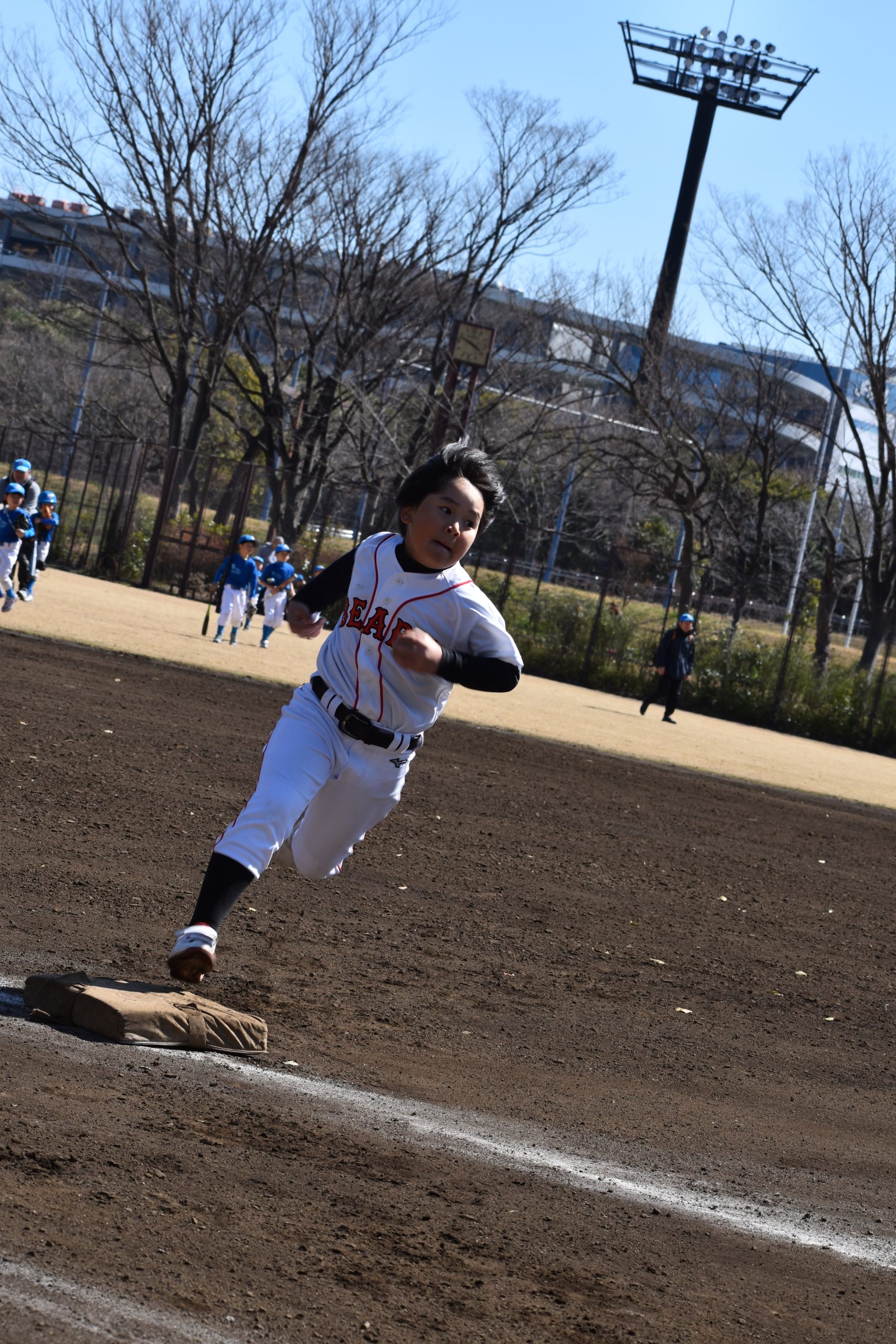 試合後、品川ブルーレーシングさんのご厚意で、ベースランニングリレーをさせていただきました。ダイヤモンド一周を激走してボールをつないでいきます!