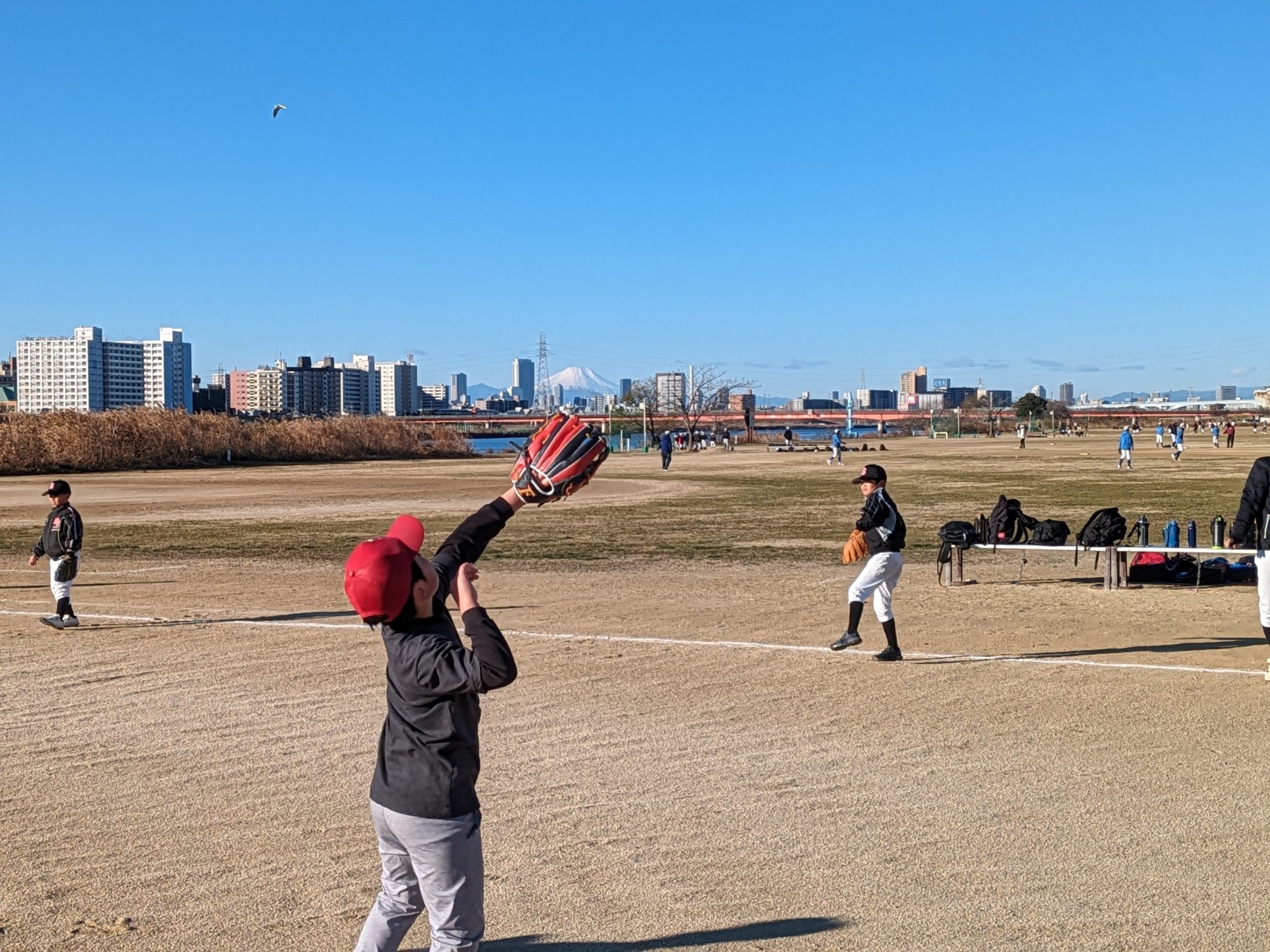 富士山もくっきりきれいに見える快晴の空の下、子どもたちはめいいっぱい体を動かして