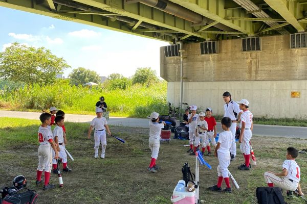 【8月29日練習】 午前中は西新井橋緑地野球場、午後は 江北橋緑地左岸野球場へ移動しての1日練習となりました。 熱中症に注意しながらの練習。 予備の飲み物、氷がどんどん無くなるほどの暑さの中、子供たちは元気に練習に取り組んでました。